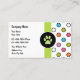 Les cartes de visite de soins pour animaux de compagnie conçus dans un graphique empreinte de patte coloré et un motif de points de pois ainsi qu'une disposition de texte personnalisée modifiable vous pouvez customiser en ligne. Parfait pour tout thème carte de visite lié aux chiens, chats, animaux de compagnie, santé des animaux de compagnie, ou vétérinaire, bien que certains l'utilisent comme un chenil pour animaux de compagnie et carte de visite de toilettage.