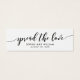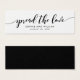 Cette mini-carte élégante avec les mots "propager l'amour" en écriture noire fait une grande marque de faveur de mariage pour vos cadeaux de faveur de mariage. Laissez le côté arrière noir ou changez-le en blanc (cliquez sur personnaliser). Il est facile de personnaliser ; il suffit de remplacer le texte de l'espace réservé pour ajouter vos propres informations. Pour plus d'options comme changer la police, la taille du texte ou l'espacement entre les lettres, cliquez sur le bouton "Personnaliser". *Veuillez noter que le filigrane Zazzle qui apparaît dans l'aperçu du zoom n'apparaîtra PAS sur le produit imprimé final. © Bois de rose et agrumes