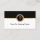 Cartes de visite Classy conçu avec un emblème d'oreille de couleur or dans cet élégant modèle design deux côtés que vous pouvez customiser en temps réel. Conçu pour un audiologiste, une clinique d'aide auditive ou un cabinet de médecin de l'ouïe,.