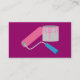 Cette illustration design d'intérieur moderne et design présente une boîte de peinture avec de la peinture rose dégoulinant du couvercle et un grand rouleau de peinture rose ! Ces cartes de visite amusants sont parfaits pour un décorateur, un peintre ou un décorateur !