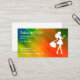 Les cartes de visite de magasins de vente au détail tendance pour femmes vêtements ou décontracté portent des conçus avec une fille de shopping élégant et graphique abstrait arrière - plan coloré dans un modèle design modifiable.