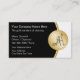 Cartes de visite de service de nettoyage de maison avec médaillon d'or simulé et symbole d'une gouvernante avec une excellente mise en page de texte que vous pouvez personnaliser. Meilleurs cartes de visite conçus pour des thèmes liés au ménage, au ménage ou au bureau, résidentiel ou commercial.