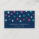 Ces cartes de visite modernes et amusants présentent un style triangle confetti rose, blanc et aqua. La couleur Arrière - plan est bleu marine, mais peut être customisée. Simple, élégant, coloré - parfait!