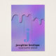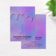 L'arrière - plan de nos clips à cheveux en feuille irisée présente des teintes rose, violet et bleu dans un motif artistique abstrait... parfait pour les créatifs qui conçoivent des bijoux ou des accessoires capillaires comme leur activité commerciale ou secondaire. Les gouttes métalliques holographiques prises du même motif ont un aspect en relief en bordure du dessus de la carte. Le gaufrage est une technique graphique qui est imprimée sur le papier, plutôt que d'être un élément physique réel superposé sur la carte. Sur le devant de la carte, deux lignes imprimées vous guident dans la découpe des tranches pour tenir les clips à cheveux et, en dessous, votre nom d'entreprise et les services de boutique ou de salon. Des informations supplémentaires sur votre entreprise, y compris le numéro de téléphone, l'adresse, l'adresse e-mail et les noms de médias sociaux, peuvent être personnalisées au verso de la carte. Remplacez simplement l'exemple de texte par votre propre libellé sur le modèle de personnalisation.