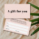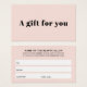Elegant customizable gift certificate card design for beauty or fashion related professionals. Simple chic design with pastel background.