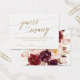Ces élégantes calligraphie dorée et florale combien de cartes de baisers sont une activité amusante pour une douche nuptiale d'automne. Remplissez un bocal avec Hersey's Kisses et demandez à vos invités de deviner combien de bonbons sont dans le bocal. La réponse la plus proche gagne un prix ! Le design présente une typographie romantique et fantaisiste de feuille d'or avec un magnifique bouquet de rose roux, de marsala et de fleurs bordeaux sur le fond. Remarque : Ce design ne comporte pas de véritable feuille d'or. C'est un graphisme de haute qualité fait pour ressembler à du papier doré.