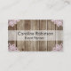 Un carte de visite personnalisable avec une conception rose en bois vintage rustique de dentelle de pays, montrée ici avec une profession d'organisateur, mais