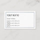 Carte de visite, taille : États-Unis : 8.9 cm x 5.1 cm, papier : Premium Soie, coins : Carré