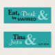 Cette petite étiquette de faveur chic comporte un arrière - plan bleu aqua et les noms de la mariée et du marié ainsi que la date du mariage dans une combinaison de noir et blanc whimsical et de lettrage classique. Le grand esperon bleu clair finit ce design. De l'autre côté de ce tag se trouve l'expression Manger, Boire & Être marié dans un style correspondant. Cette étiquette moderne est une excellente façon de finir en faveur de l'emballage. Coordination des produits disponibles. Voulez-vous modifier le style de police ou la couleur ou la taille du texte ? Cliquez sur le bouton orange "Customisez-le !" sous le design. Cela vous permettra de customiser davantage votre design.