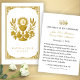 Une carte de souvenir de mariage profondément révérente représentant l'Hostie sacrée avec le monogramme «IHS» surélevé au-dessus d'un calice doré, flanqué de blé eucharistique, de raisins et des Cœurs unis de Jésus, Marie (couronnée de roses) et Joseph. Entouré d'un cadre baroque orné, ce design proclame le caractère sacré du Saint Mariage, ancré dans la Très Sainte Eucharistie et la Sainte Famille. Parfait pour les noces catholiques, les anniversaires ou les cadeaux de mariage spirituels. Personnalisez avec les noms et la date du mariage.