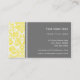 Cartes de visite dans le motif floral élégant et vintage de damassé en jaune, blanc et gris lumineux modernes. Personnalisable avec vos détails de contact, élégant et contemporain. Contactez-nous pour une couleur faite sur commande.