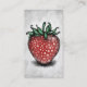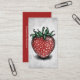 Un carte de visite de fraise mignonne avec une fraise pois en rouge, vert et blanc sur un arrière - plan gris marbré.