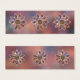 Un design fractal pâle mais coloré comme des nuages d'étoiles dans l'espace ou du marbre multicolore aux tons rose, mauve, pêche et bleu. L'arrière - plan est une texture tachetée comme une nébuleuse lointaine, et la pièce est accentuée par un médaillon de starburst encadré d'or comme si incrusté de figuier d'or. Compléter l'image sont des bijoux lisses à l'opale et des pierres précieuses facettées inset dans un fleuron doré.