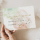 Cette carte de suggestions de nom de bébé confetti en or est parfaite pour un baby shower rustique. Le design se compose d'un arrière - plan rose, vert et blanc avec des parties scintillant d'or confetti splash.
