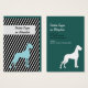 Cartes de visite avec des illustrations minimales de Grand Danois en bleu et blanc avec un fond rayé gras et deux côtés imprimés.