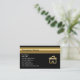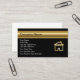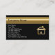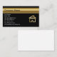 Cartes de visite immobiliers avec symbole maison et emblème de nom couleur or, ainsi qu'une grande zone de texte vous pouvez customiser dans ce design moderne. Meilleurs cartes de visite pour des thèmes liés à l'immobilier, les agents immobiliers, courtiers, constructeurs ou handyman.