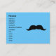 Ces cartes de visite de moustache drôles et fantastiques sont parfaits pour tous ceux qui ont le sens de l'humour ! Si vous mettez une de ces cartes sous votre nez, vous avez un déguisement instantané de moustache ! Donnez une moustache à tous vos amis juste pour le plaisir! Ces cartes sont parfaites pour le réseautage de façon élégante! Customisez-les avec vos coordonnées (adresse e-mail, adresse postale, numéro de téléphone, numéro de cellule ou tout ce que vous voulez !).