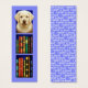 I WUFF to Read! se trouve à l'arrière de cette marque de livre tandis qu'une douce Yellow Labrador Retriever Pup lui donne la tête à travers une bibliothèque avec des livres sur le devant.