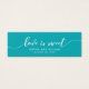Cette mini carte design contient les mots "love is sweet" en écriture blanche et une couleur arrière - plan modifiable (cliquez sur customiser pour accéder). Il fait une grande marque de faveur de mariage pour vos cadeaux de faveur doux et comestibles de mariage. Il est facile de personnaliser ; il suffit de remplacer le texte de l'espace réservé pour ajouter vos propres informations. Pour plus d'options comme changer la police, la taille du texte ou l'espacement entre les lettres, cliquez sur le bouton "Personnaliser". *Veuillez noter que le filigrane Zazzle qui apparaît dans l'aperçu du zoom n'apparaîtra PAS sur le produit imprimé final. © Bois de rose et agrumes
