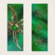 Une oeuvre abstraite en vert vif et en cuivre. Un bijou vert clair est entouré de lames d'herbe bordées de cuivre, agrémentées d'émeraudes étincelantes et d'étoiles oranges. Les fractales ondulantes et courbes de l'arrière - plan apparaissent en vert, marron et orange plus profond à l'intérieur du fil de cuivre du motif de la feuille.