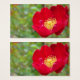Photo macro d'un rose miniature monopétale rouge vif au centre jaune ensoleillé.