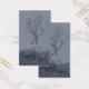 Paysage 3D froid et venteux en hiver, créé en Vue. Sur le sommet d'une colline blanche avec glace et neige, contre un ciel gris orageux avec pluie ou sommeil tombant régulièrement, un érablière nu et solitaire se dresse sous un banc en bois.