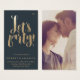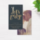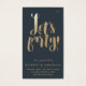 A fun, casual ticket design for a stag & doe or jack & jill party. This design features a faux gold foil-look script "Let's Party!" on a navy background. Plenty of room to personalize with your event details as well as space on reverse for the couple's photo (or leave blank). Other colours available.