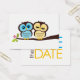 Mariage de chouettes bleues et jaunes, sauf les annonces de dates