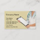 Modèle Médicale de cartes de visite avec l'image graphique d'une infirmière ou d'un docteur tenant un porte - bloc avec un stéthoscope autour de son cou et texte que vous pouvez customiser en ligne. Pensez à ceci comme carte de visite médical pour n'importe qui qui est un médecin, une infirmière, un RN, ou un personnel administratif médical.