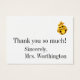 Vous avez un petit régal ici ! Cet art est une combinaison des dessins de Gina Jane pour lesquels j'ai des DROITS EXCLUSIFS à utiliser sur Zazzle quand même elle / celle de sa société CU est légalement interdit. Bon appétit ! En tant que professeur, quand j'enseignais l'art à l'école primaire en particulier, je recevais facilement plus de 100 cadeaux de Noël par an, et j'ai passé la plupart de mon Noël à écrire 100 remerciements ! Certains ont dit qu'ils ne donnent pas de cartes de remerciement ; pourtant, les enfants attendent avec impatience et les méritent, alors ... ce serait une solution douce. Je l'ai créé sur le CARTE DE VISITE de la fête. Il y en a 100 dans le pack. Il y a assez de place pour ajouter le nom de l'étudiant / de n'importe qui sur le côté arrière. Cela vous fera économiser de l'argent et du temps. Cela reconnaîtra à quel point les donneurs de cadeaux sont aussi douces. Je veux toujours un merci. Je le fais ! Quand on me remercie, je m'en souviens. Quand je ne le suis pas, je me souviens de ne pas donner un cadeau la prochaine fois ... ; ) C'est un modèle, donc vous pouvez certainement changer tout sur le côté arrière et ce que vous voulez que le front dise. MERCI ! ! Vous savez, ça n'a même pas besoin d'être un carte de remerciements. Il peut être ce que vous voulez qu'il soit! Merci, Sharon Rhea Ford, NBCT-Art (www.zazzle.com/sharonrhea*) S'il vous plaît dites à vos amis et venez me voir directement et souvent. Je l'apprécie ! Oh, je l'offre sur le stock blanc ici, mais ça a l'air super sur Pearl aussi. J'utilise indestructible pour mes cartes de visite ; mais, ne le faites pas car vous pourriez vouloir personnaliser avec les noms des donneurs de cadeaux.