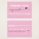 Cartes De Visite Merci Satisfaction du client Coeur de note rose