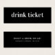Cartes De Visite Minimal moderne | Billet de boisson Mariage Bar