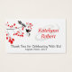 Utilisez cet ensemble de cartes de visite avec personnalisation comme étiquettes pour vos faveurs de mariage pour remercier votre invité d'y être allé - il suffit de percer un trou dans la fin et attacher à vos faveurs avec ruban assorti. C'est un design élégant et romantique avec deux oiseaux noirs dans une branche d'arbre délicate avec des feuilles rouges. Les prénoms de la Mariée et de la Chambre sont à droite et écrits à l'encre rouge pour correspondre aux feuilles. Le long du bord du botton se trouvent les mots "merci d'avoir fêté avec nous" et la date mariage. L'envers est un rouge solide qui correspond.