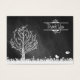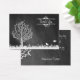 Oiseaux et arbre dessinés sur carte de remerciements en damier