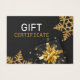 Elégant design de vacances de haute qualité avec des flocons de neige de parties scintillant or glamour et boîte cadeau sur un arrière - plan anthracite gris foncé noir. Ce certificat cadeau festif est parfait pour votre petite entreprise ou pour offrir à vos amis et à votre famille, en particulier pour le temps de Noël.