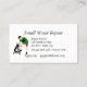 Customisez ce carte de visite avec vos propres informations. Service de réparation de petits moteurs avec un type de dessin animé frustré par sa tondeuse à gazon