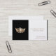 Montré dans un carte de visite de taille standard mais sur stock de carte perle avec un shimmer léger. Il a une couronne d'or glamour avec un espace pour remplir tous vos détails importants. Style classique. Le dos est vide pour que vous personnalisiez plus avec votre adresse, les heures et le temps de rendez-vous, si désiré. Customisez plus loin en téléchargeant votre propre photo de tête au lieu de la couronne, si vous préférez.