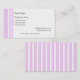 Cartes de visite personnalisés avec rayures roses dans rose clair, rose foncé et blanc. Cliquez sur Customiser pour modifier les couleurs des arrière - plans, sélectionner vos polices et ajouter du texte personnalisé, et plus encore, enregistrer votre conception pour plus tard.