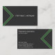 Ces cartes de visite simples sont parfaits pour qu'une personne distribue à n'importe quel événement de social ou de mise en réseau. L'avant et le dos de la carte comporte un arrière - plan texturisé noir. Une flèche de vert se dirige vers, et appelle l'attention sur votre texte. L'avant contient la pièce pour votre nom ou nom de la société, alors que le dos contient la pièce pour tous vos détails de contact.