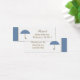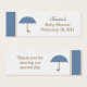 Cette étiquette de faveur chéri comporte un parapluie bleu doux avec une bordure bleue et mocha. Personnalisez ce tag avec les détails du baby shower et un merci.