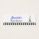 Cette petite marque de service classique présente une silhouette de la Tour Eiffel et une bordure en fond rayé noir et blanc et pointillé. Votre texte personnalisé est une combinaison d'un script bleu vif et d'une police calligraphique noire. Cette fine étiquette de faveur fonctionnerait bien pour un baby shower à thème parisien. Voulez-vous modifier le style de police ou la couleur ou la taille du texte ? Cliquez sur le bouton orange "Customisez-le !" sous le design. Cela vous permettra de customiser davantage votre design.
