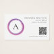 Cartes De Visite Pink and Purple Monogram QR Code Package Insert