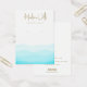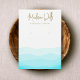 Police manuscrite sur motif à vague dans les tons subtils de bleu et vert d'aqua Elegant porte d'affichage à oreille avec deux "marqueurs" de trou imprimé - ce ne sont pas des trous réels.