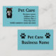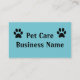 Cartes de visite "Garde d'animaux". Chat noir et blanc aux yeux verts, oreilles roses et nez rose. Moderne mais simple. Personnalisable avec votre nom d'entreprise, adresse et numéro de téléphone. Au verso, ajoutez votre nom d'entreprise entre les deux empreintes de pattes.
