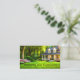 Cartes de visite modernes pour un service d'entretien de pelouse ou d'aménagement paysager à domicile conçues avec une belle pelouse et une illustration de maison avec arbustes avec le nom de votre entreprise figurant sur le recto de cette carte de visite pour les paysagistes professionnels.