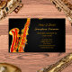 Cartes de visite pour les joueurs de saxophone ou les instructeurs ; conception de musique noire et d'or avec illustration d'un saxophone ; design est personnalisé avec des champs de texte personnalisables pour ajouter vos nom, entreprise, adresse et autres informations