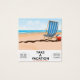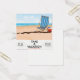 Prenez un Vacances "C'est plus rapide en train" affiche de vacances à la plage de style Vintage d'un transat à rayures vintage et d'un ballon de plage sur une plage de sable chaud au bord de l'océan.