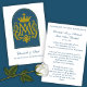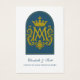 Cette carte de prière de mariage catholique révérencieux présente un monogramme marial doré radieux couronné de gloire et encadré dans une arche bleue mariale. Le recto honore Notre-Dame, dont l'intercession bénit le sacrement de mariage. À l'intérieur, une bénédiction nuptiale solennelle prie pour l'unité, la paix et la sainteté du couple, sur le modèle de la Sainte Famille. Un souvenir précieux pour les mariages enracinés dans la beauté de la tradition catholique et la dévotion à la Vierge Marie.