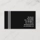 Des bandes professionnelles cartes de visite en noir. Ces cartes de visite sont simples, élégants, professionnels et feront une première impression durable. Ils peuvent être utilisés pour une variété de professions, y compris un graphiste, un comptable, des finances, un décorateur, un programmeur informatique et plus encore! Il vous suffit de remplir vos propres renseignements personnels et de les faire livrer à votre porte d'entrée. D'autres options de personnalisation comme les polices, les couleurs et l'ajout de champs de texte sont trouvées lorsque vous cliquez sur le bouton "Customiser".