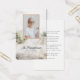 Merci à vos invités d'avoir assisté au service de célébration de la vie de votre défunt avec la charmante promenade de la plage funéraire prière commémorative / carte de poème. Personnalisez-le avec une photo, votre propre message de gratitude et poème ou prière sur le dos. Cette carte d'hommage à la mort en bord de mer présente une numériquement aquarelle peinte sur la nature côtière photographiée d'une promenade en bois rustique menant à une plage de sable et à l'océan avec de hautes herbes vertes.